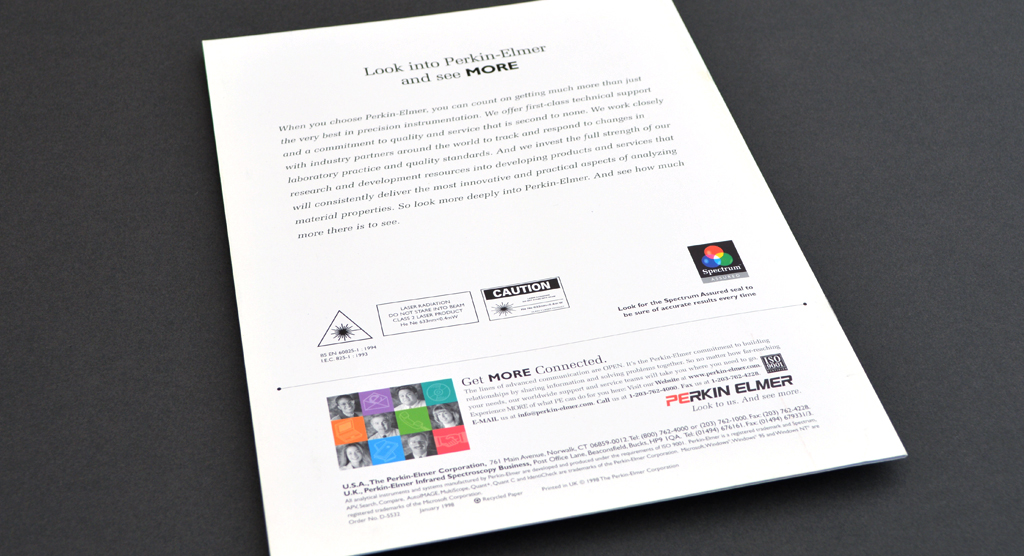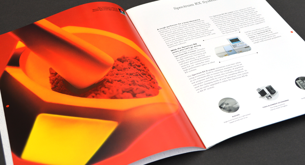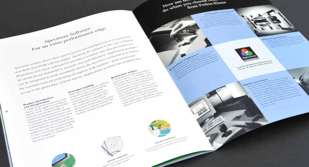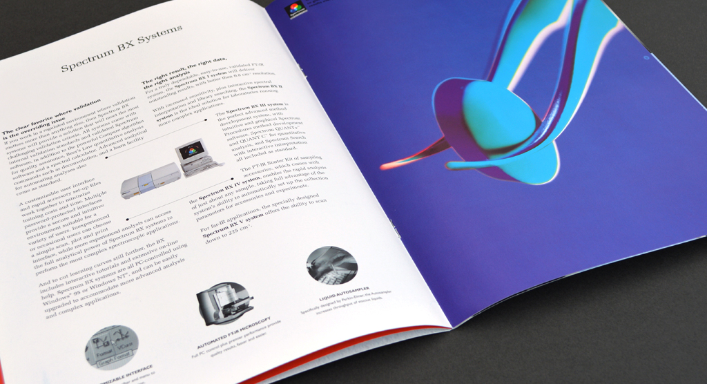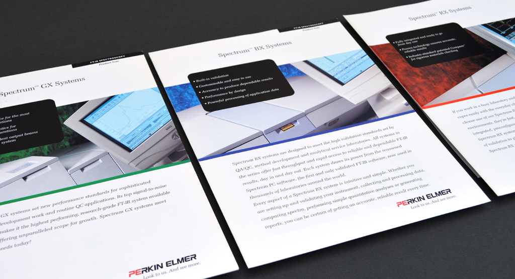 We helped Perkin-Elmer to visibly validate their commitment to excellence through a new 'Spectrum Assured' quality mark. We chose to use red, green and blue (the colours that make up pure white light) to complement the “Spectrum” product range and the laser light technology it utilises. This strong sense of colour