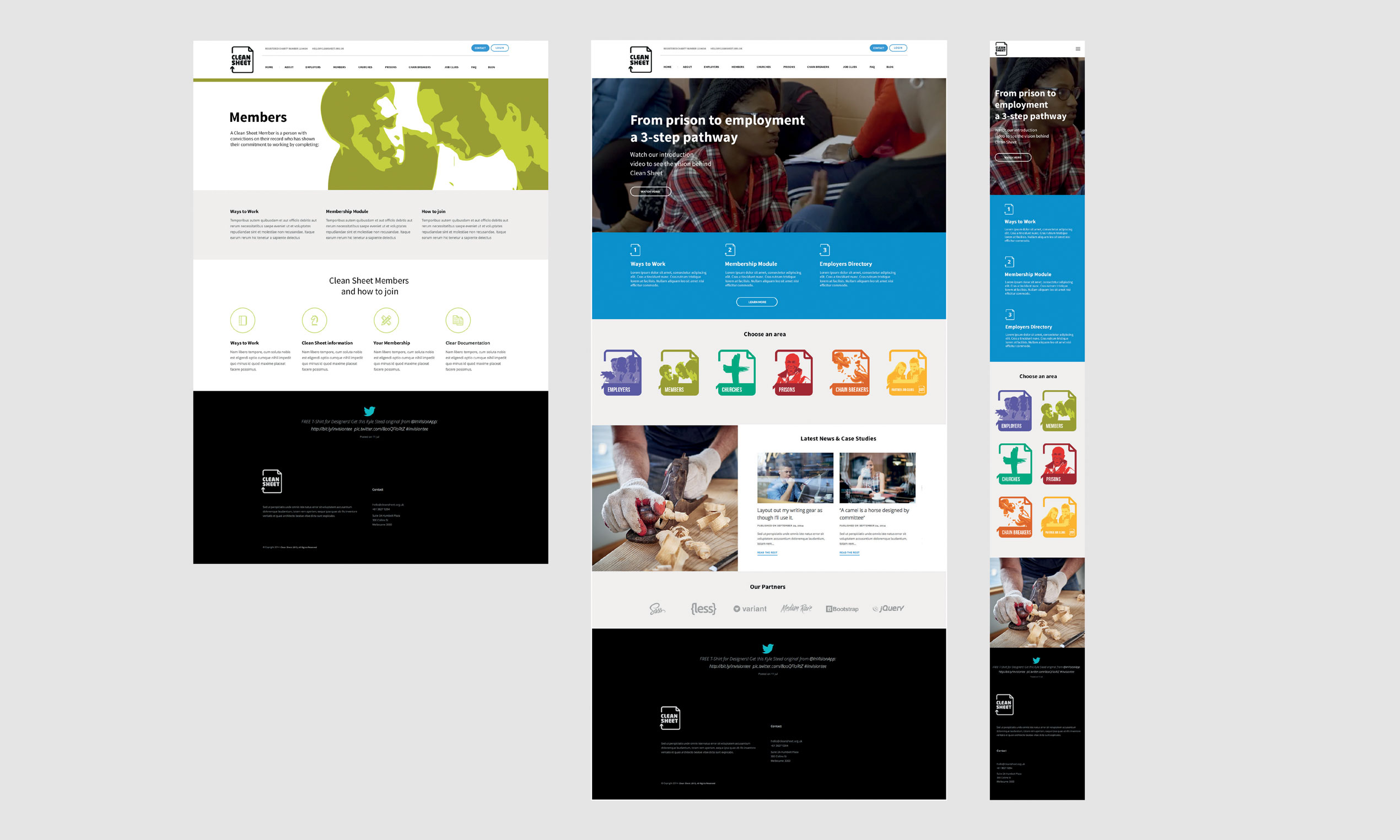 Key to this new brand image was the selection of an illustrative technique that we applied to Clean Sheet's photography. Now, their imagery looks consistent, whether its been shot in different lighting conditions or focus. A new colour system was chosen to differentiate and communicate clearly to their different stakeholders such as employers, ex-offenders, fund-raisers and prison officials.