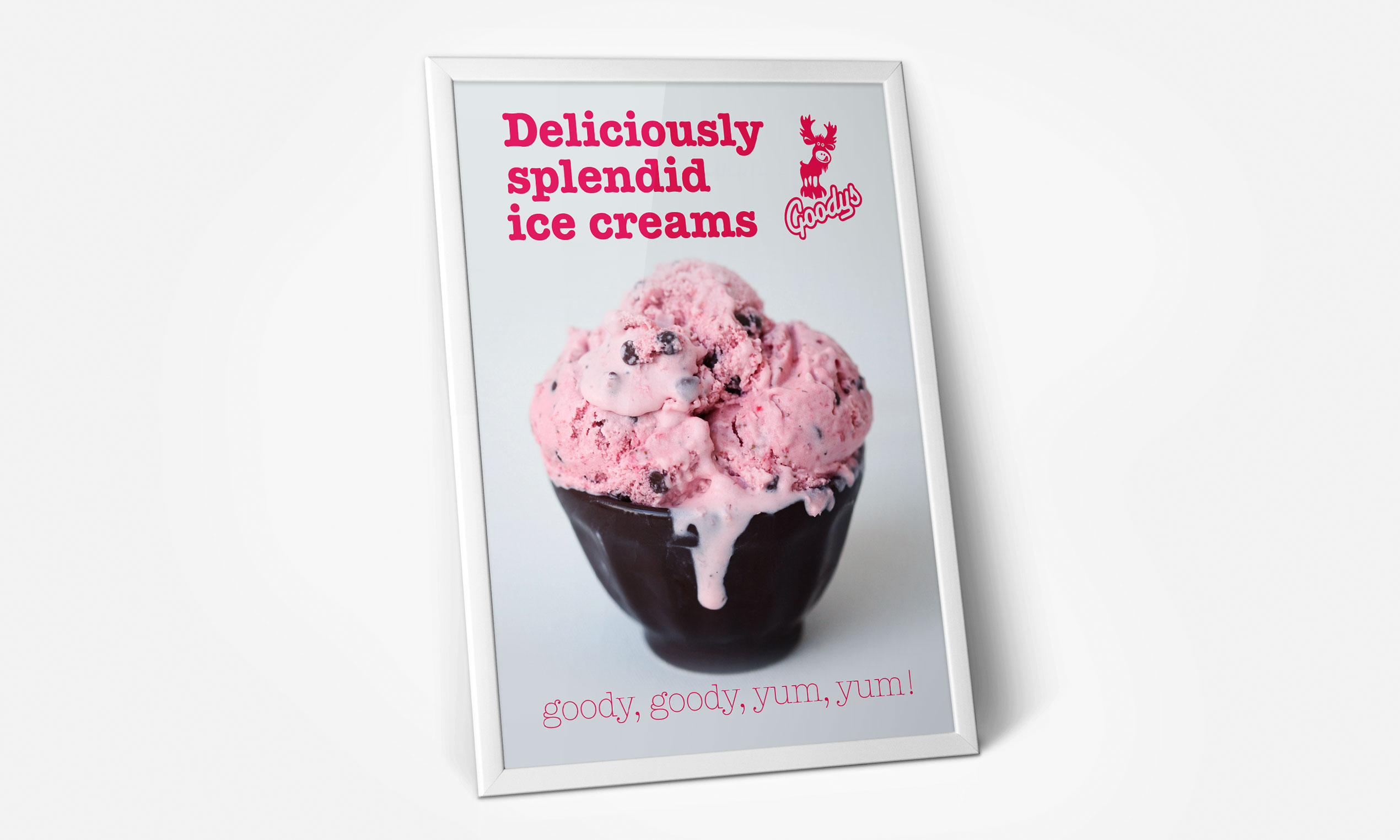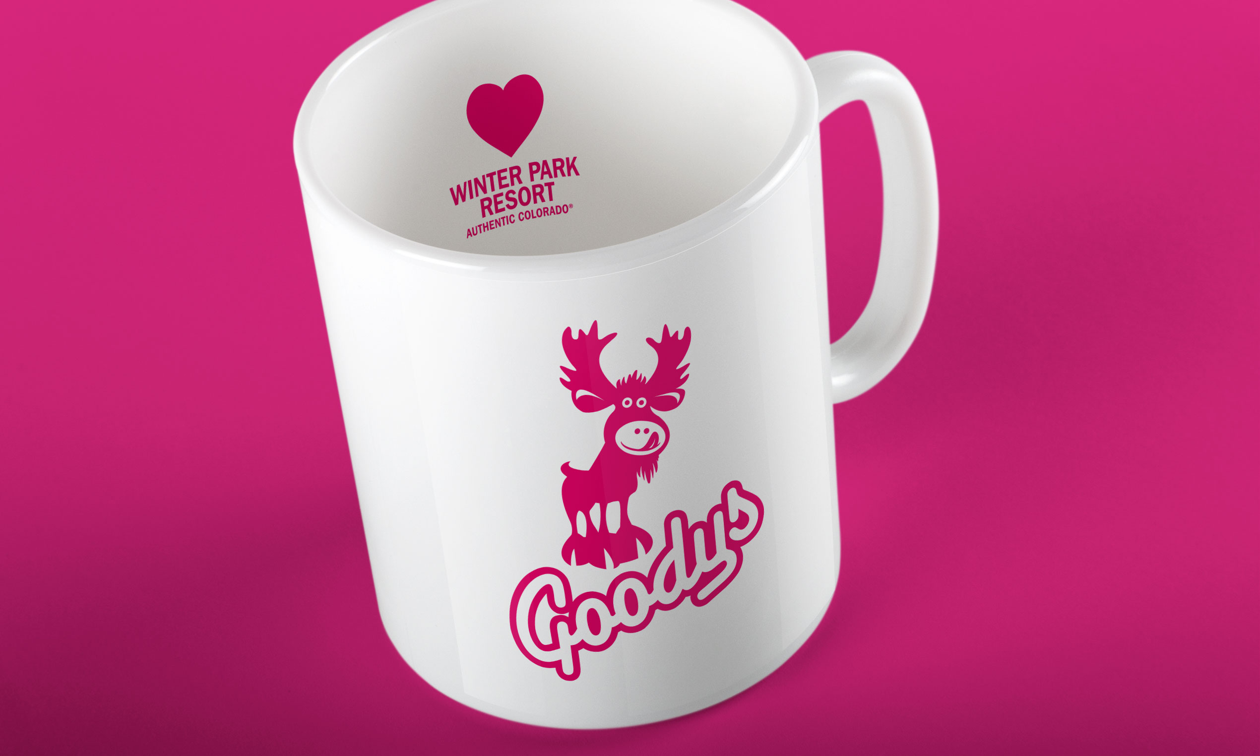 Goodys is a family owned business in Winter Park, Colorado. They serve authentic french crepés, all natural ice cream and Italian sodas. The Goodys logo incorporated a handcrafted logotype and the Goodys moose. Notice the moose’s nose and mouth is actually a smiley face.