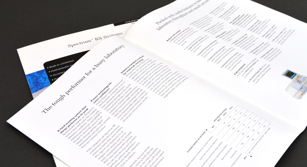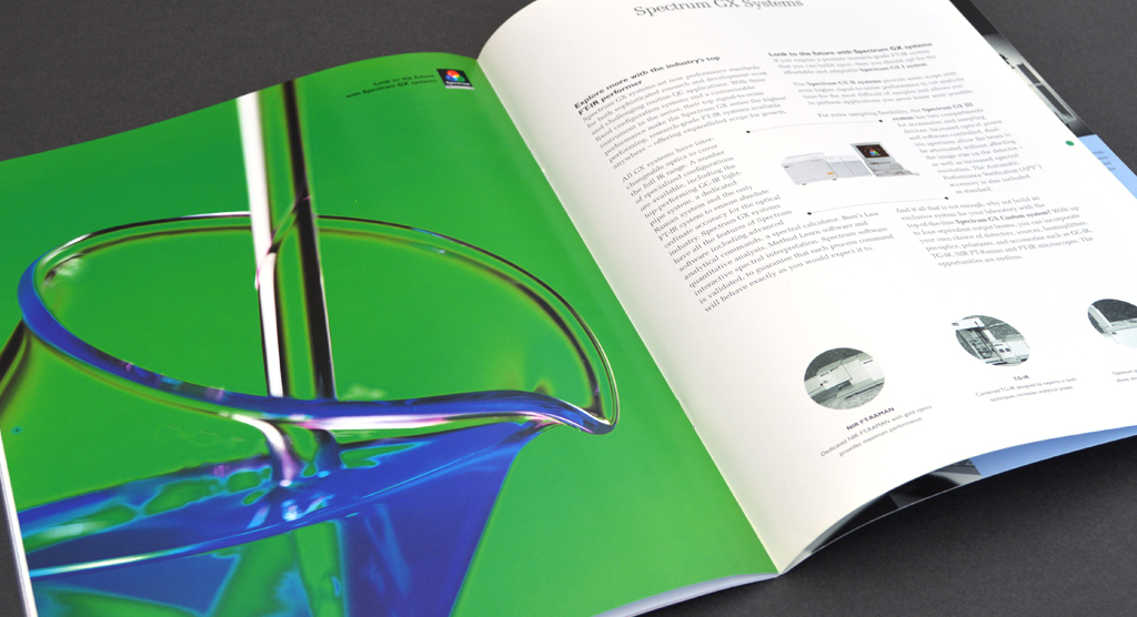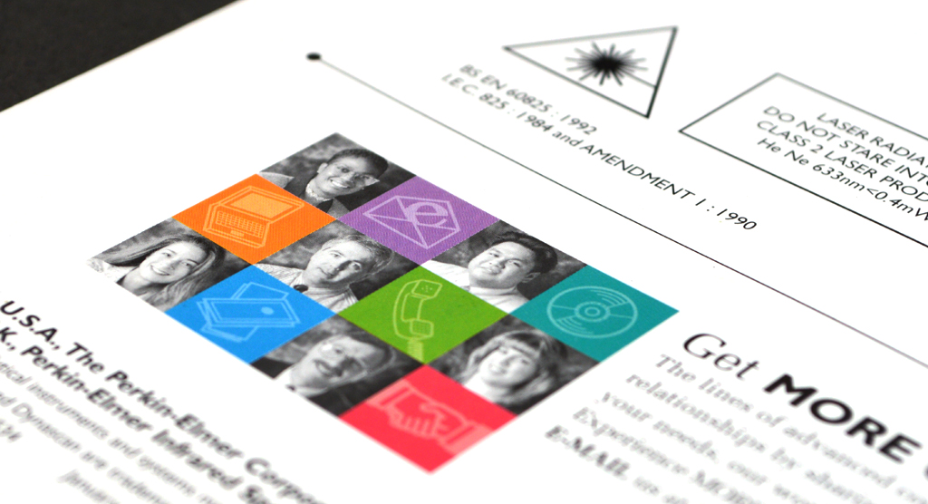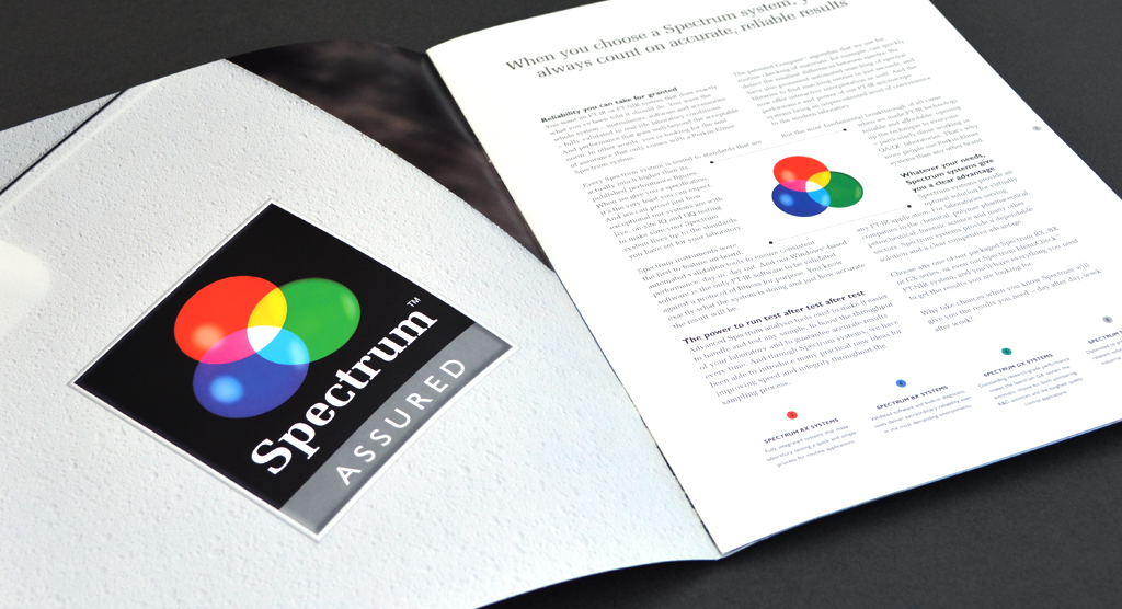 We helped Perkin-Elmer to visibly validate their commitment to excellence through a new 'Spectrum Assured' quality mark. We chose to use red, green and blue (the colours that make up pure white light) to complement the “Spectrum” product range and the laser light technology it utilises. This strong sense of colour